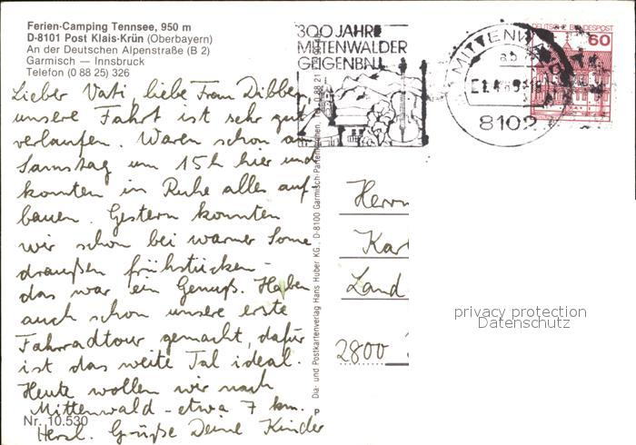 alte Postkarte Klais Campingplatz Tennsee postalisch gelaufen Erhaltung siehe scans