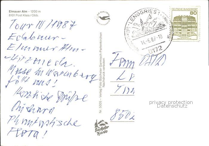72285050 alte Postkarte Klais Elmauer Alm postalisch gelaufen Erhaltung siehe scans KatCode: 11110009180122