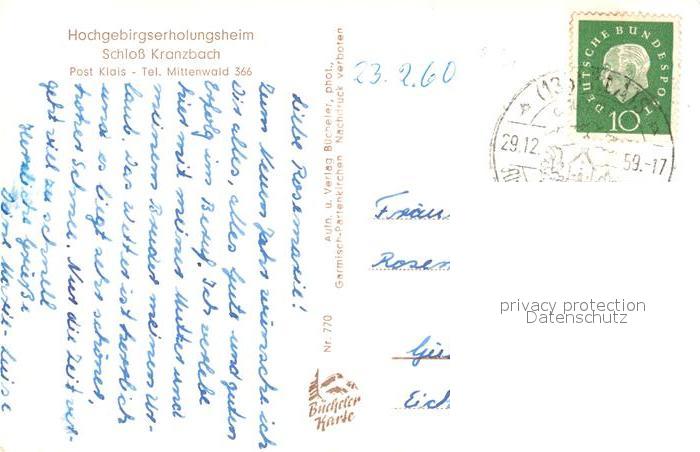 73283771 alte Postkarte Klais Erholungsheim Schloss Kranzbach postalisch gelaufen Erhaltung siehe scans [NatalD47] KatCode: 11110009180122