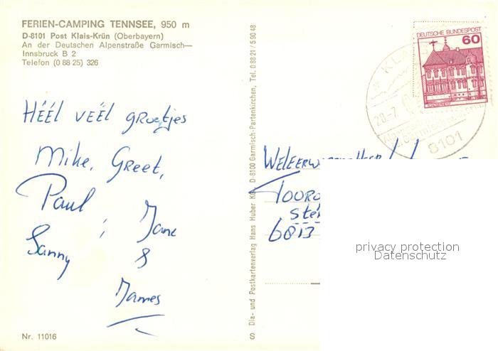 73306510 alte Postkarte Klais Ferien Camping Tennsee postalisch gelaufen Erhaltung siehe scans [WerneD78] KatCode: 11110009180122
