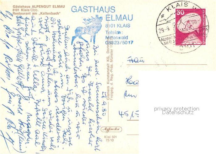 73039783 alte Postkarte Klais Gasthaus Elmau Panorama postalisch gelaufen Erhaltung siehe scans [WerneD78] KatCode: 11110009180122