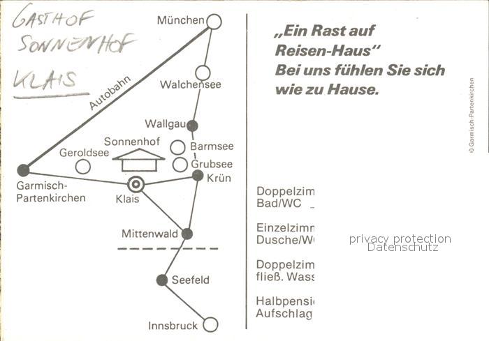 72101092 Klais Gasthaus Sonnenhof postalisch nicht gelaufen Werbekarte (keine Postkarte) Erhaltung siehe scans KatCode: 11110009180122