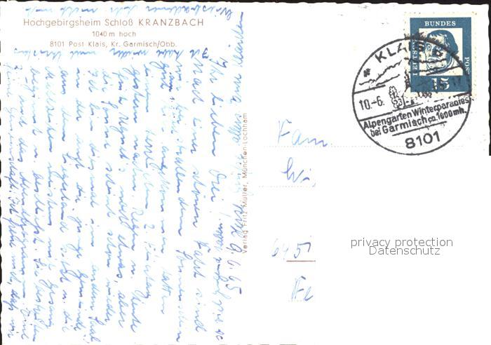 72374531 alte Postkarte Klais Hochgebirgsheim Schloss Kranzbach Hochblassen Alpspitze postalisch gelaufen Erhaltung siehe scans KatCode: 11110009180122
