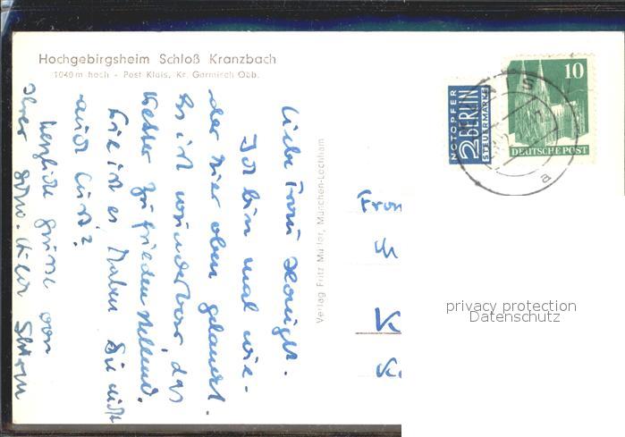 72129302 alte Postkarte Klais Hochgebirgsheim Schloss Kranzbach Winterpanorama Alpen postalisch gelaufen Erhaltung siehe scans KatCode: 11110009180122