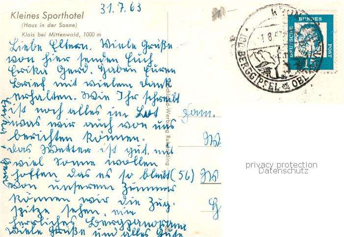 73833995 alte Postkarte Klais Kleines Sporthotel Gaststaette postalisch gelaufen Erhaltung siehe scans [WerneD78] KatCode: 11110009180122