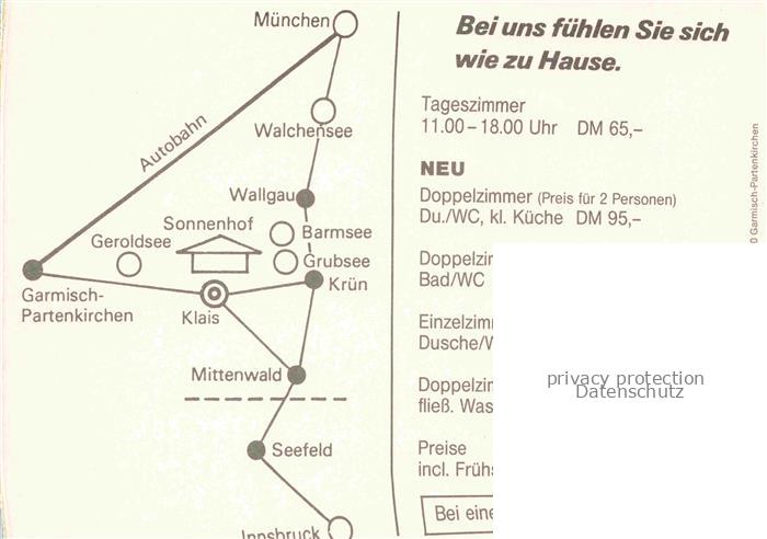 74043000 Klais-Kruen Bayern Alpengasthof Sonnenhof Gastraeume Zimmer postalisch nicht gelaufen Werbekarte (keine Postkarte) Erhaltung siehe scans [WerneD78] KatCode: 11110009180122
