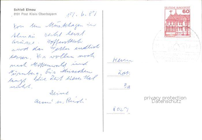 71913372 alte Postkarte Klais Schloss Elmau postalisch gelaufen Erhaltung siehe scans KatCode: 11110009180122