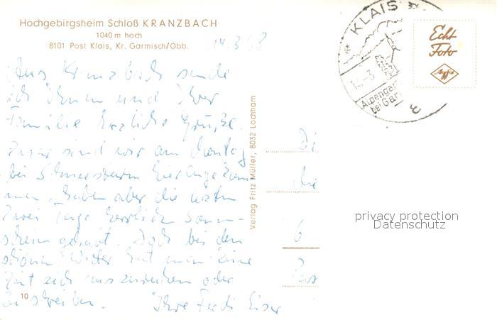 73292523 alte Postkarte Klais Schloss Kranzbach Panorama postalisch gelaufen Erhaltung siehe scans [WerneD78] KatCode: 11110009180122