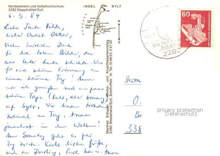73125669 alte Postkarte Klappholttal Nordseeheim Volkshochschule postalisch gelaufen Erhaltung siehe scans [LiesaD40] KatCode: 11110001054133