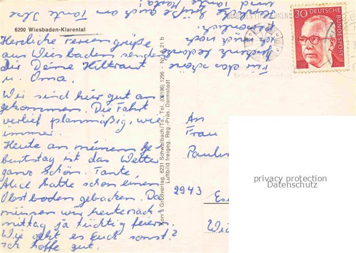 Klarental Wiesbaden Hessen Fliegeraufnahme postalisch gelaufen Erhaltung siehe scans [FriedD77] alte Postkarte Frie Katcode 11110006414000