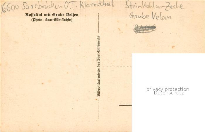 73694659 Klarenthal Saarbruecken Rosseltal mit Grube Velsen Steinkohle-Zeche postalisch nicht gelaufen Erhaltung siehe scans [FriedD77] KatCode: 11110010041100