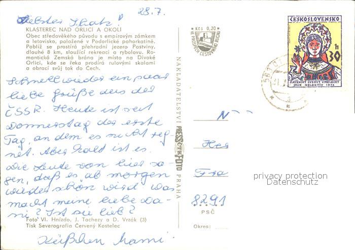 old postcard Klasterec nad Orlici postalisch gelaufen Erhaltung siehe scans