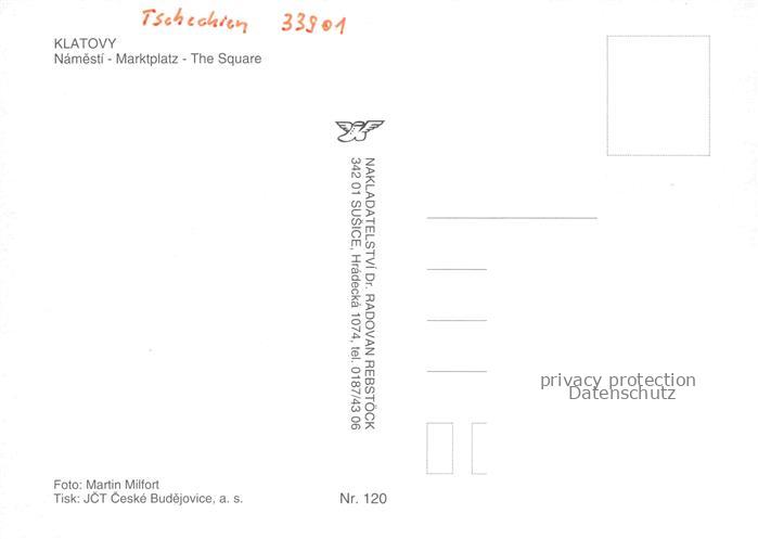 74006255 Klatovy Klattau CZ Namesti Marktplatz postalisch nicht gelaufen Erhaltung siehe scans [FriedD77] KatCode: 11520