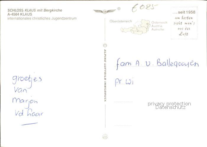 72271824 Klaus Pyhrnbahn Schloss Klaus mit Bergkirche Fliegeraufnahme postalisch nicht gelaufen Erhaltung siehe scans KatCode: 11390314040906
