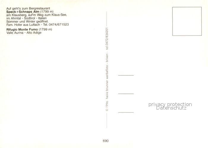 73713026 Klausberg Bergrestaurant Speck und Schnaps Gaststube Bergsee postalisch nicht gelaufen Erhaltung siehe scans [WerneD78] KatCode: 11110009472118