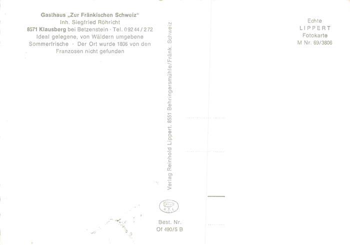 74014749 Klausberg Fraenkische Schweiz Betzenstein Bayern Gasthaus Zur Fraenkischen Schweiz Blick vom Eibgrat Gastraum Aufstiegsleitern postalisch nicht gelaufen Erhaltung siehe scans [WerneD78] KatCode: 11110009472118