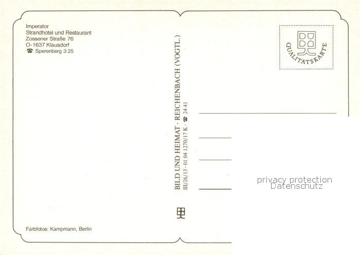 73734560 Klausdorf Mellensee Ausflugsgaststaette Strandhotel Restaurant Imperator postalisch nicht gelaufen Erhaltung siehe scans [FriedD77] KatCode: 11110012072002