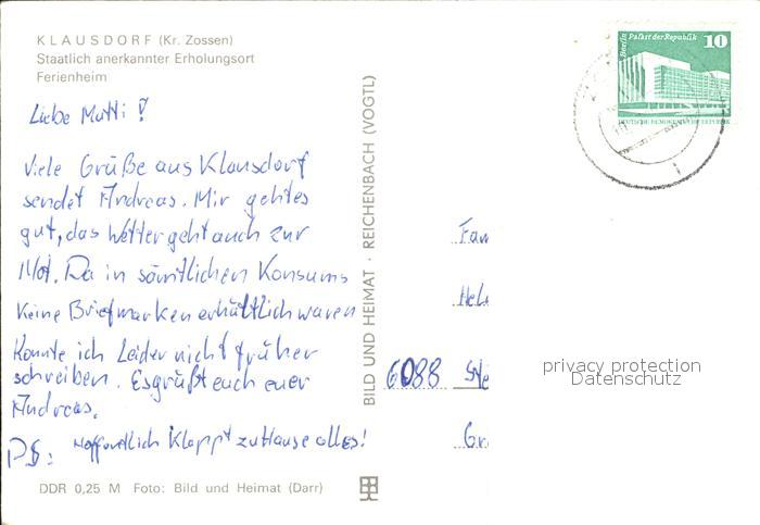 72539383 alte Postkarte Klausdorf Mellensee Ferienheim postalisch gelaufen Erhaltung siehe scans [LiesaD40 kt120box] KatCode: 11110012072002