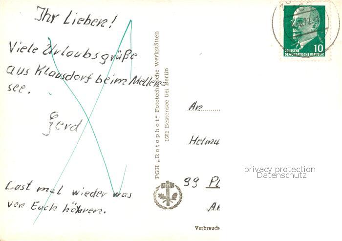 73593362 alte Postkarte Klausdorf Mellensee Gaststaette Terrasse Badestrand postalisch gelaufen Erhaltung siehe scans [FriedD77] KatCode: 11110012072002