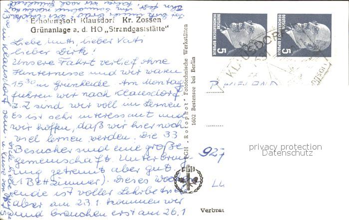 72327239 alte Postkarte Klausdorf Mellensee Gruenanlage an der HO Strandgaststaette postalisch gelaufen Erhaltung siehe scans KatCode: 11110012072002
