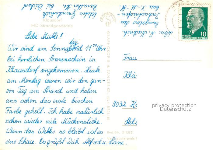 73084464 alte Postkarte Klausdorf Mellensee HO Strandgaststaette Terrasse postalisch gelaufen Erhaltung siehe scans [FriedD77] KatCode: 11110012072002