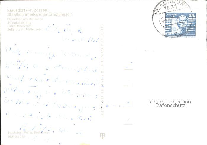 72373414 alte Postkarte Klausdorf Mellensee Mellensee Strandgaststaette Eikaufszentrum Zeltplatz postalisch gelaufen Erhaltung siehe scans KatCode: 11110012072002