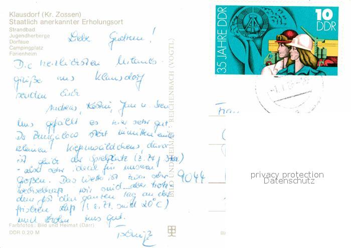 72650982 alte Postkarte Klausdorf Mellensee Strandbad Jugendherberge Dorfaue Campingplatz Ferienheim postalisch gelaufen Erhaltung siehe scans [FriedD77] KatCode: 11110012072002