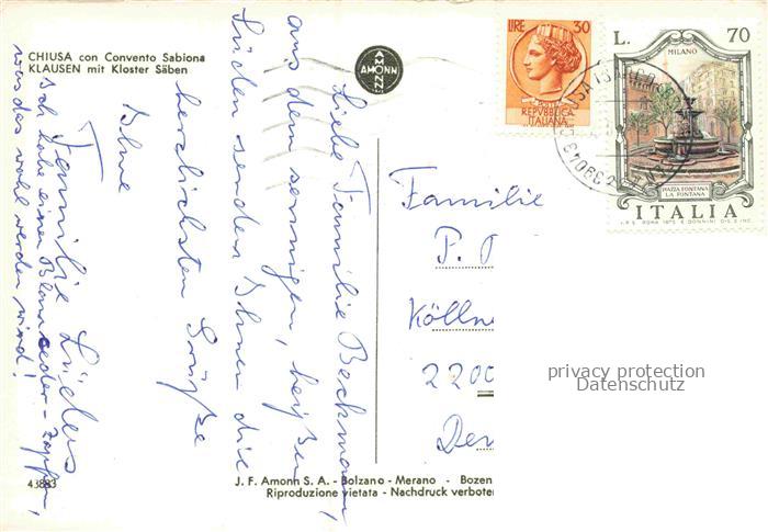 74153597 old postcard Klausen Chiusa Eisacktal Bolzano Suedtirol IT Panorama mit Kloster Saeben postalisch gelaufen Erhaltung siehe scans [FriedD77] KatCode: 11240