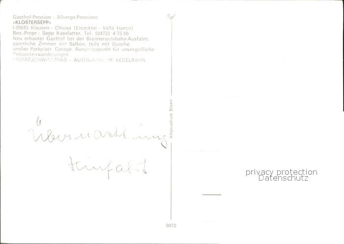 Klausen Eisacktal Suedtirol Gasthof Klostersepp postalisch nicht gelaufen Erhaltung siehe scans