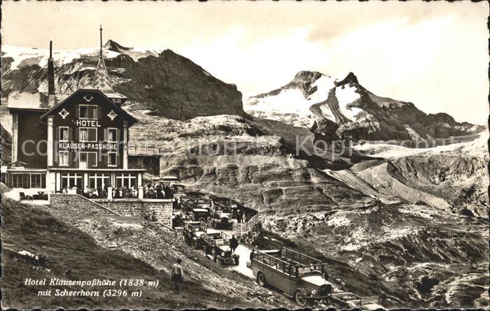 11773530 alte Postkarte Klausenpass Hotel Scheerhorn Autos postalisch gelaufen Erhaltung siehe scans KatCode: 11470480835652