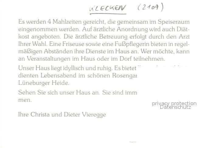 73614854 Klecken Privat Altenheim Vieregge postalisch nicht gelaufen Werbekarte (keine Postkarte) Erhaltung siehe scans [WerneD78] KatCode: 11110003353029