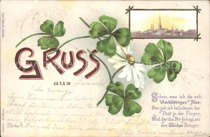 alte Postkarte Kleeblatt Cloverleaf Trebol Trefle Margerite Litho Gedicht postalisch gelaufen Erhaltung siehe scans