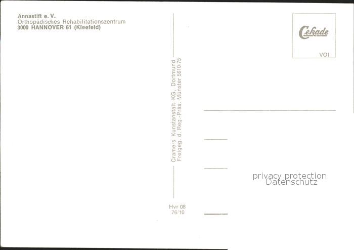 72038048 Kleefeld Hannover Orthopaedisches Rehabilitationszentrum postalisch nicht gelaufen Erhaltung siehe scans KatCode: 11110003241001