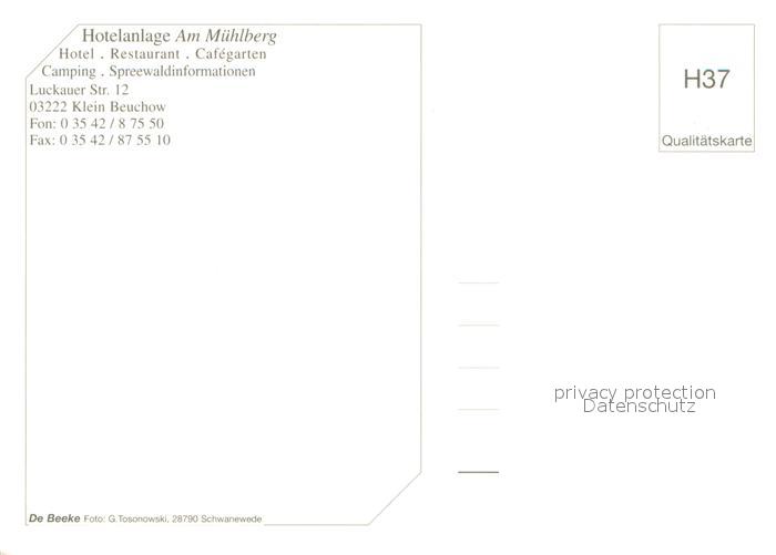 73646678 Klein Beuchow Hotelanlage Am Muehlberg Tor zum Spreewald postalisch nicht gelaufen Erhaltung siehe scans [FriedD77] KatCode: 11110012066196