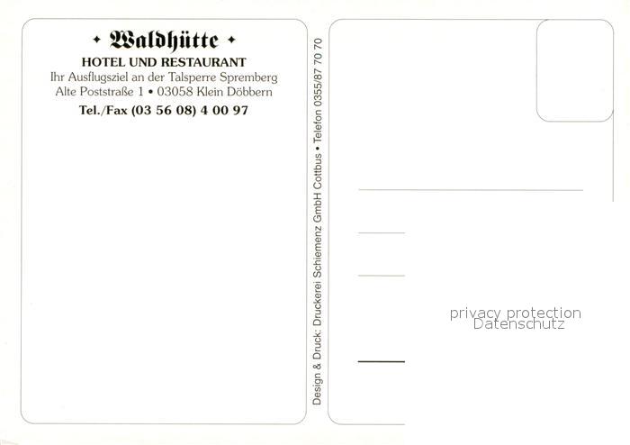 73722975 Klein Doebbern Waldhuette Hotel und Restaurant an der Talsperre Spremberg postalisch nicht gelaufen Erhaltung siehe scans [WerneD78] KatCode: 11110012071301