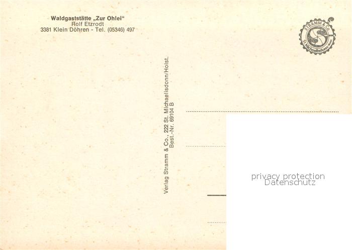 73726508 Klein Doehren Waldgaststaette Zur Ohlei Terrasse Aussenansicht postalisch nicht gelaufen Erhaltung siehe scans [LiesaD40] KatCode: 11110003153008