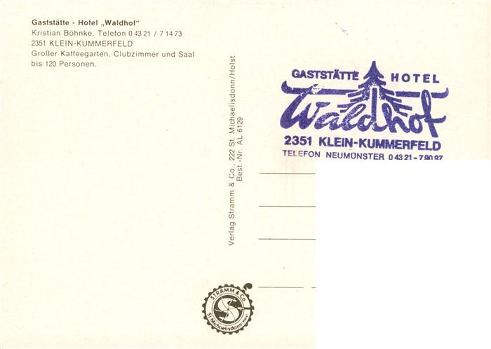 73887697 alte Postkarte Klein Kummerfeld Gaststaette Hotel Waldhof Gastraeume Freiterrasse postalisch gelaufen Erhaltung siehe scans [WerneD78] KatCode: 11110001060028