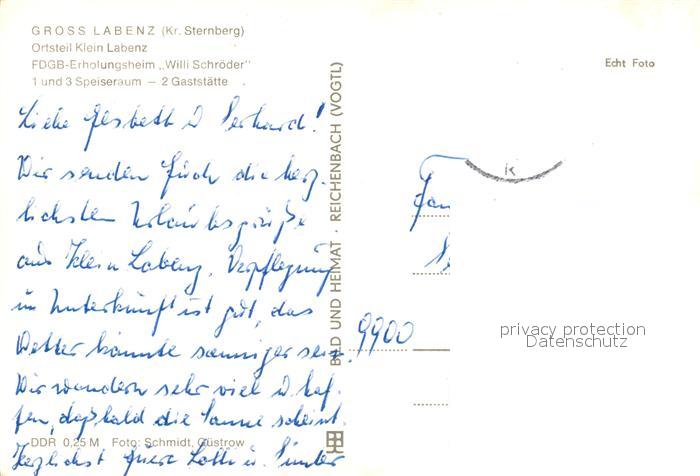 73593363 alte Postkarte Klein Labenz FDGB Erholungsheim Willi Schroeder Speiseraum Gaststaette postalisch gelaufen Erhaltung siehe scans [FriedD77] KatCode: 11110013058105