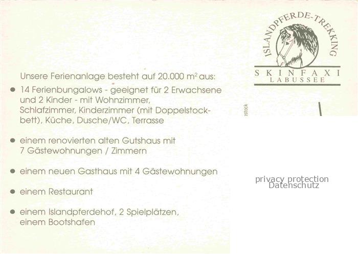 74026413 Klein Quassow Ferienanlage Ferienbungalows Restaurant Islandpferdehof postalisch nicht gelaufen Erhaltung siehe scans [FriedD77] KatCode: 11110013055074
