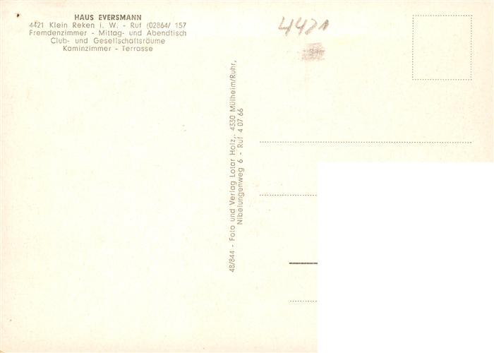 73891607 Klein-Reken Haus Eversmann Club und Gesellschaftsraeume postalisch nicht gelaufen Erhaltung siehe scans [FriedD77] KatCode: 11110005554044