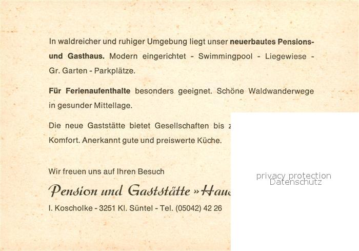 73120028 Klein Suentel Pension Gaststaette Haus Sonnenblick Aussichtsturm postalisch nicht gelaufen Werbekarte (keine Postkarte) Erhaltung siehe scans [KathaD81] KatCode: 11110003252002