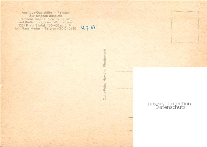 73126805 Klein Suentel Pension Zur schoenen Aussicht postalisch nicht gelaufen Erhaltung siehe scans [LiesaD40] KatCode: 11110003252002