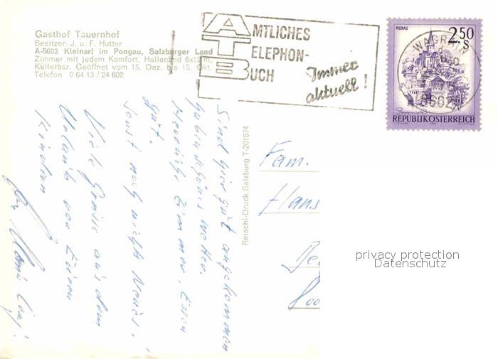 12602824 alte Postkarte Kleinarl Gasthof Tauernhof postalisch gelaufen Erhaltung siehe scans [LiesaD40] KatCode: 11390322050414