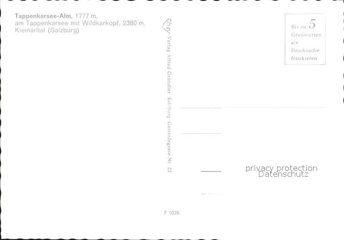 72486683 Kleinarl Tappenkarsee Alm Wildkarkopf postalisch nicht gelaufen Erhaltung siehe scans KatCode: 11390322050414