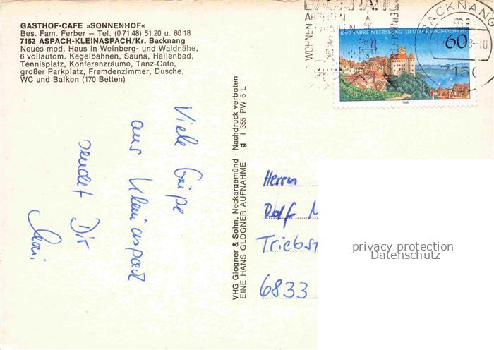 74052881 Kleinaspach Aspach BW Gasthof Cafe Sonnenhof Hallenbad Gaststube postalisch nicht gelaufen Erhaltung siehe scans [WerneD78] KatCode: 11110008119087