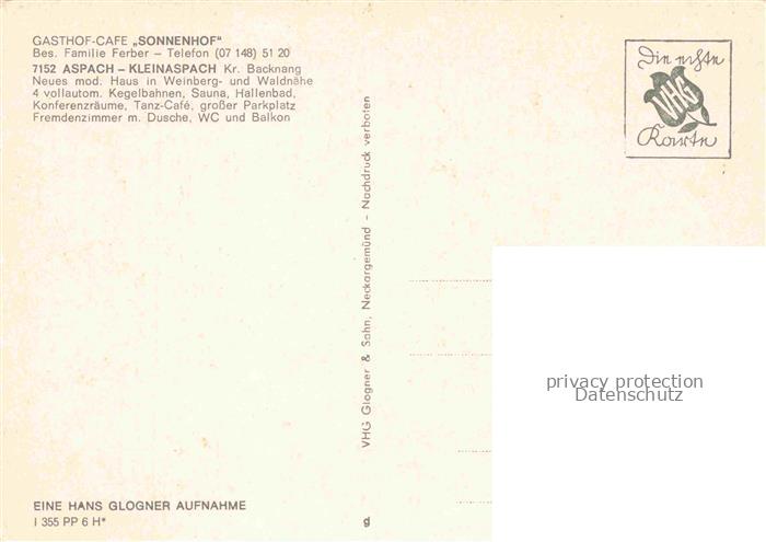 74052675 Kleinaspach Aspach BW Panorama Gasthof Sonnenhof Hallenbad Gastraum Bar postalisch nicht gelaufen Erhaltung siehe scans [WerneD78] KatCode: 11110008119087