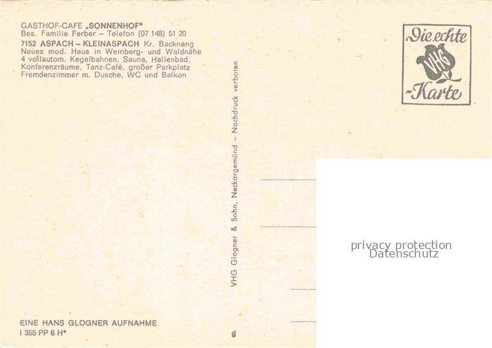 74052861 Kleinaspach Aspach BW Panorama Gasthof Sonnenhof Hallenbad Gaststube postalisch nicht gelaufen Erhaltung siehe scans [WerneD78] KatCode: 11110008119087