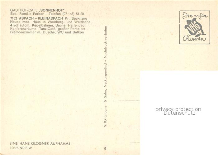 73659785 Kleinaspach Gasthof Cafe Sonnenhof Kegelbahn postalisch nicht gelaufen Erhaltung siehe scans [FriedD77] KatCode: 11110008119087