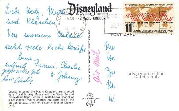 74132717 alte Postkarte Kleinbahn Liliputbahn Eisenbahn– Disneyland Santa Fe Magic Kingdom postalisch gelaufen Erhaltung siehe scans [SanaeD93] KatCode: 22040000000900