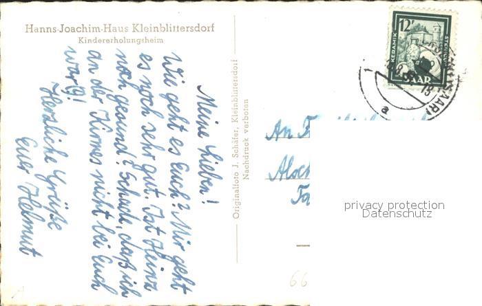 41792270 alte Postkarte Kleinblittersdorf Hanns-Joachim Haus Kindererholungsheim postalisch gelaufen Erhaltung siehe scans KatCode: 11110010041514